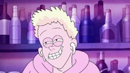 His real name is unknown. He is actually a man over 50 years of age masquerading as a man in his early 20s as part of his grandiose system to publicly execute everybody over 30 years of age who convened at his bar in a nonsensical attempt to keep it from becoming a pub.