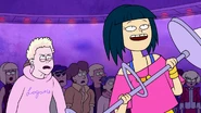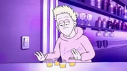 When somebody that the barkeeper suspects to be over 30 approaches him for a drink; he asks for some ID which make his victims comply. He then tells them that they have qualified for the "VIP Treatment". He makes them put on a white robe and walk upto a podium. The ceiling then transforms to expose a giant vacuum ceiling fan. The barkeeper's victims then get sucked into the giant ceiling fan and die.