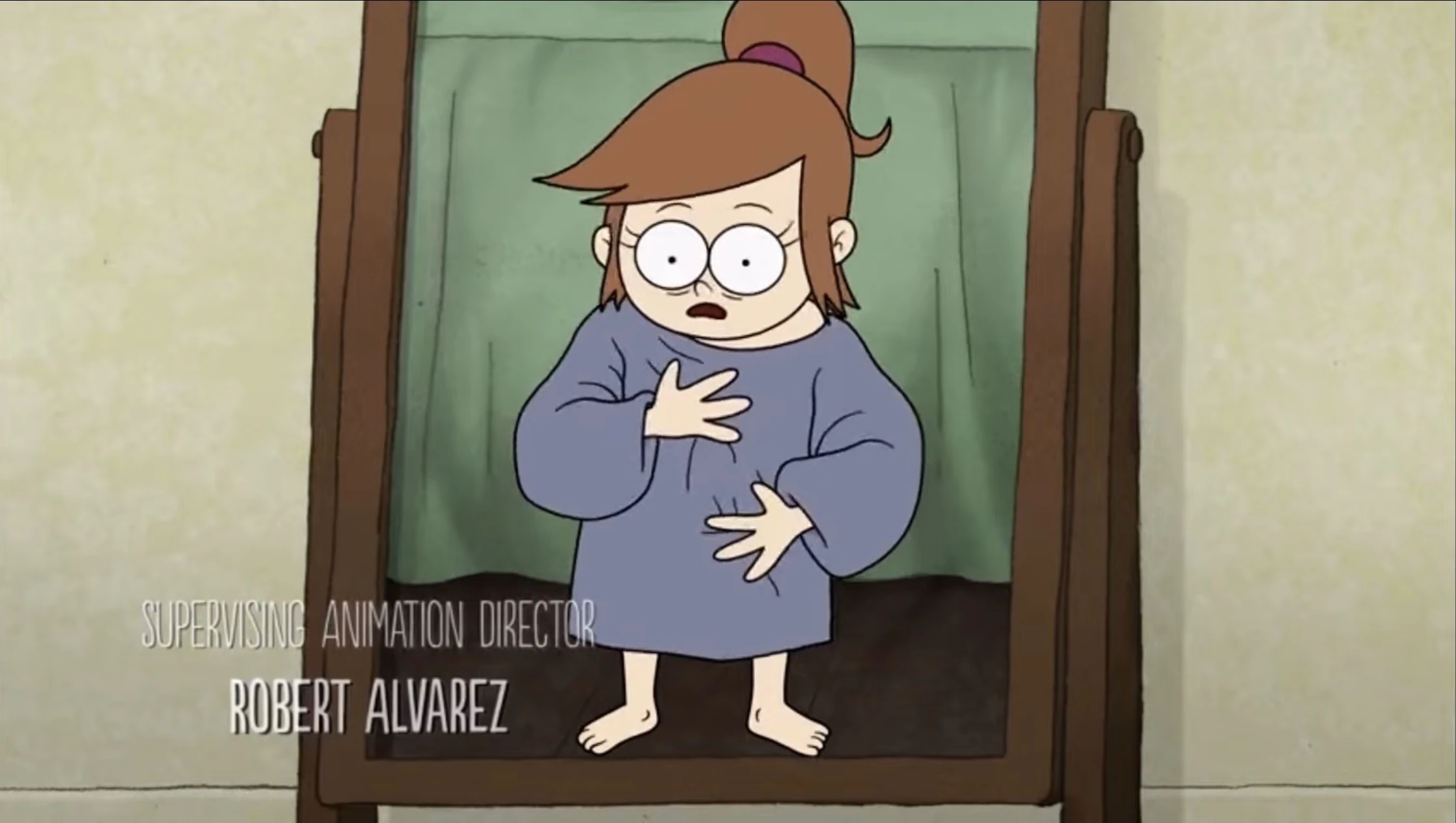 The next morning Emily wakes up, which we see from her point of view, but she appears to be shorter as she struggles while reaching for and putting on her sweater in the closet. She looks in the mirror and she discovers she now looks like a little kid. She realizes it must have had something to do with Alex's pendant.